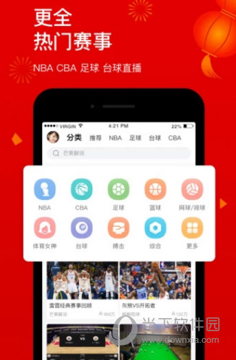 1、【“体育明星”陪你看直播】麦迪、杨毅、芒果、小姨妈、美娜、王猛、神姐儿、九哥等知名主播解说,更有高颜值女主播陪你一起看球聊天,实时互动零距离!
